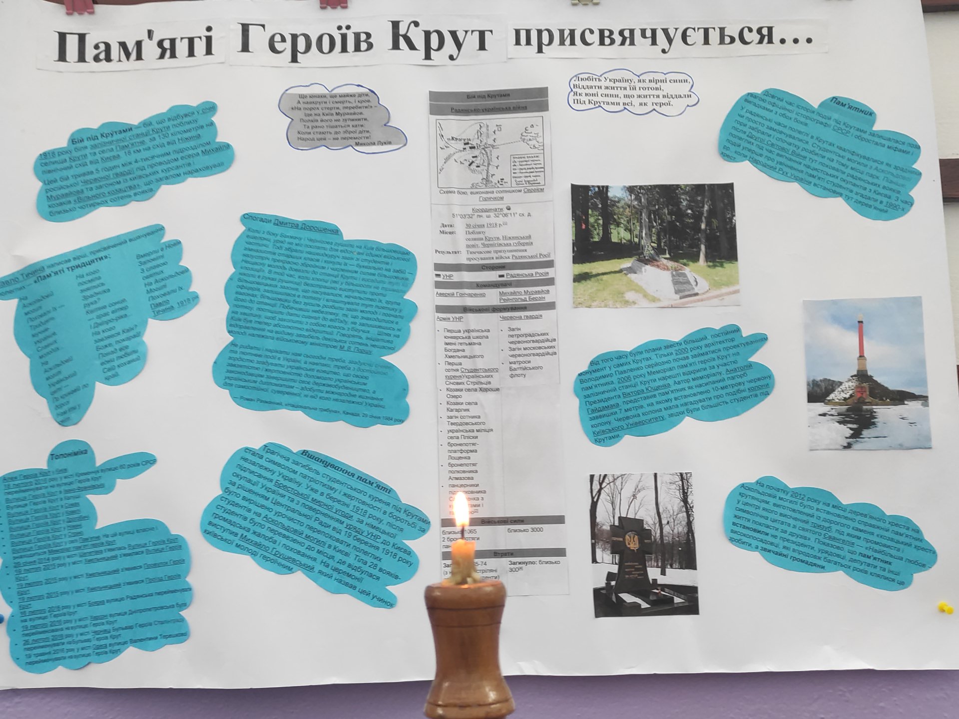 У класах відбулися інформаційні хвилинки, під час яких учні дізналися про історичне значення бою під Крутами, мужність і самопожертву його учасників.