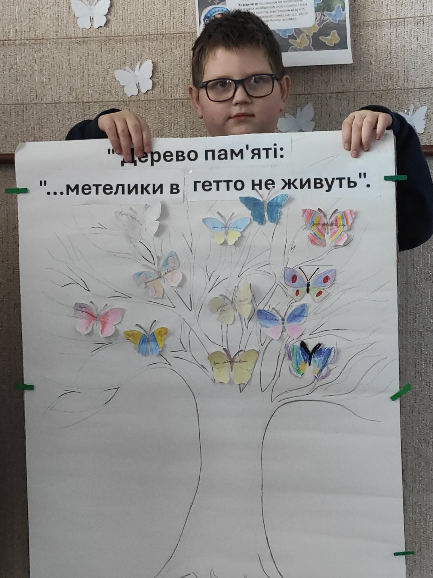 Учні створили символічне дерево пам’яті «Метелики в гетто не живуть», яке стало знаком скорботи та нагадуванням про трагічні сторінки історії.