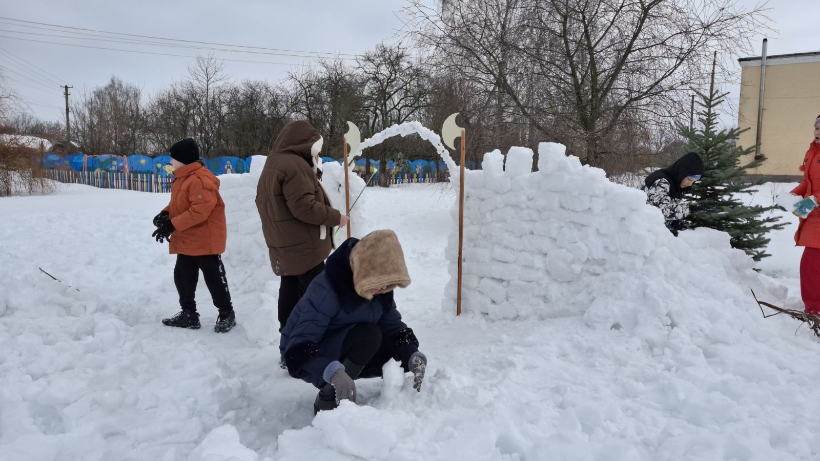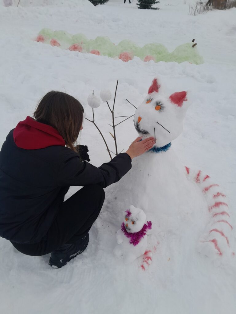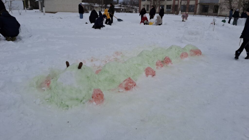 У дружній та творчій атмосфері з’явилося казкове снігове містечко: замки, веселі сніговики, машина, зимова гусениця, сердечка зі снігу та герої мультфільмів.