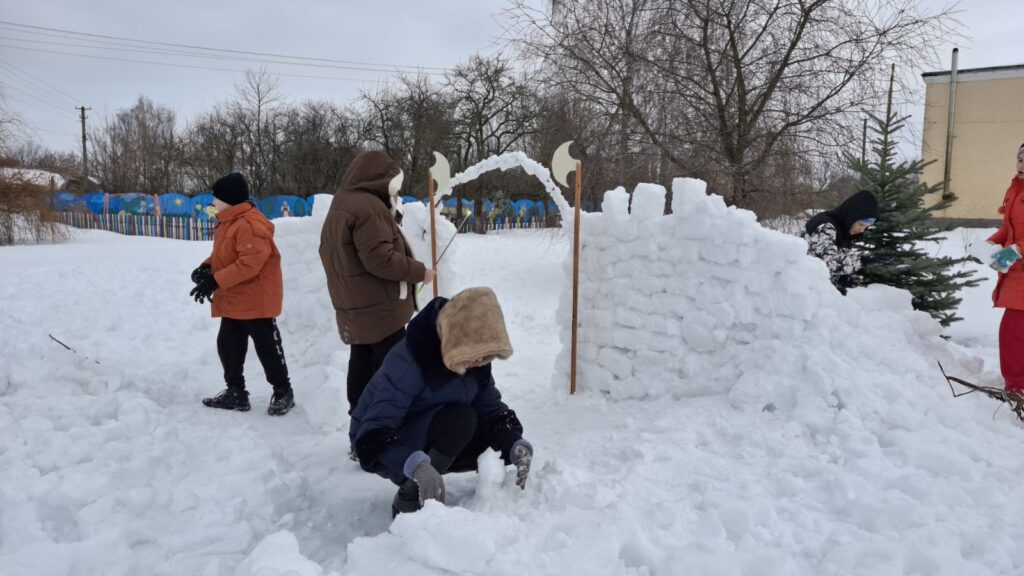 Справжня зимова атмосфера панувала в центрі села, де учні 1–11 класів разом із вчителями творили неймовірні снігові дива.