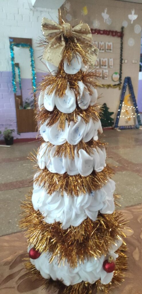 Школярі з великим натхненням та фантазією підійшли до завдання й створили оригінальні новорічні ялинки з підручних матеріалів.